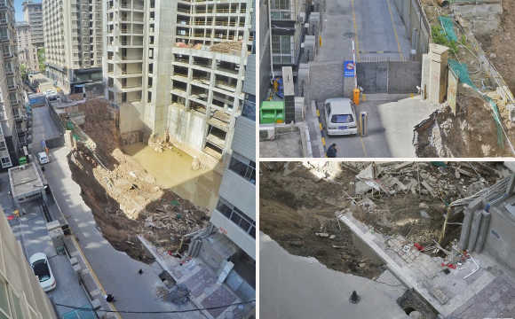 2017年4月18日消息,西安。直到現在,在西華門(mén)宏城國際公寓居住的業(yè)主康先生還心有余悸:17日凌晨2時(shí)許,在他將車(chē)挪走后5分鐘左右,路面就發(fā)生大面積塌陷。據了解,垮塌處有16米深,南北長(cháng)度也有20多米,里面滿(mǎn)是水。