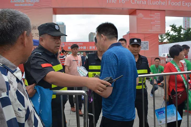 ? ? ? 安保期間,漯河市金盾保安服務(wù)有限公司抽調2300人次特勤隊員,負責活動(dòng)進(jìn)行期間的安全工作及交通疏導工作。同時(shí)在展區入口處安裝安檢門(mén)10臺,手持金屬探測儀10臺,用來(lái)盤(pán)查可疑人員,防止危險品被帶進(jìn)展館,確保食博會(huì )有序進(jìn)行。同時(shí)出動(dòng)巡邏車(chē)26輛,清障車(chē)4輛。并成立了會(huì )場(chǎng)總指揮部、分指揮部、交通保障組、武裝巡邏組,加強會(huì )場(chǎng)及周邊的治安巡邏防控,強化展會(huì )期間的各項安保措施,以確保食博會(huì )的安全。
