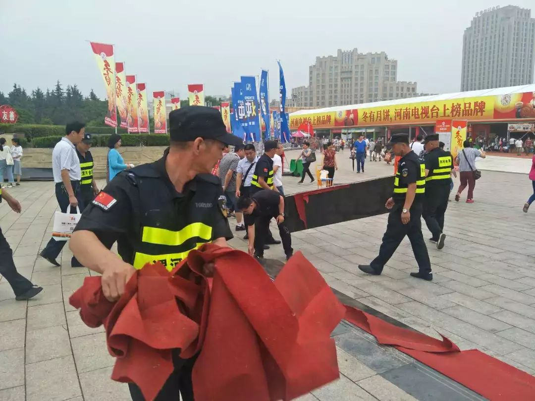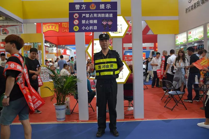 ? ? ? ?為確保食博會(huì )安全、有序的進(jìn)行,漯河市金盾保安服務(wù)有限公司將做好“食博會(huì )”期間安全保衛作為首要任務(wù),超前謀劃、精心部署、及時(shí)成立“食博會(huì )安全保衛工作領(lǐng)導小組”,制定周密的安全保衛工作方案和應急處置預案;堅持“統一指揮、密切協(xié)作”的原則,公司領(lǐng)導、各責任區域負責人、后勤保障人員及全體保安員共同堅守崗位、攻堅克難,全體動(dòng)員、全力以赴,圓滿(mǎn)完成了食博會(huì )期間各項安保任務(wù)。