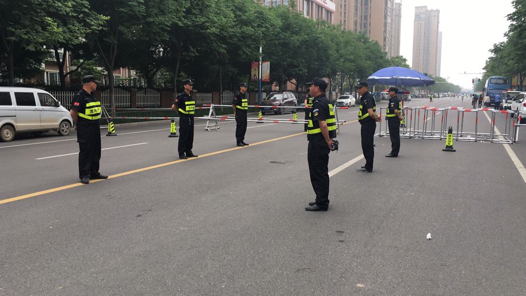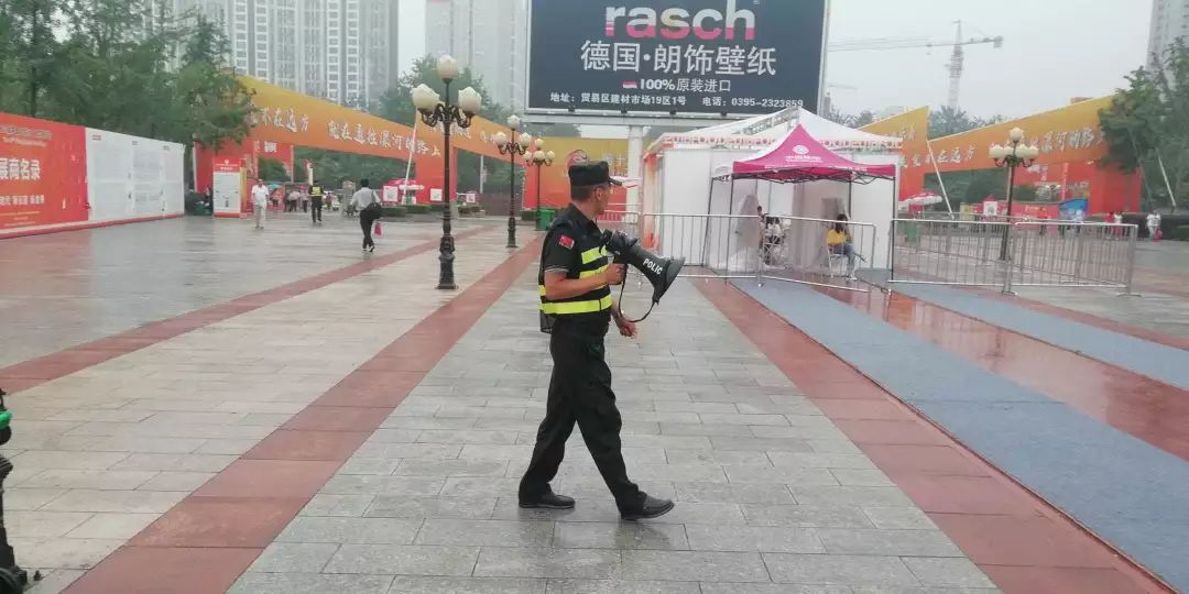 不畏炎熱的金盾保安,排查可疑人員,確保會(huì )場(chǎng)井然有序