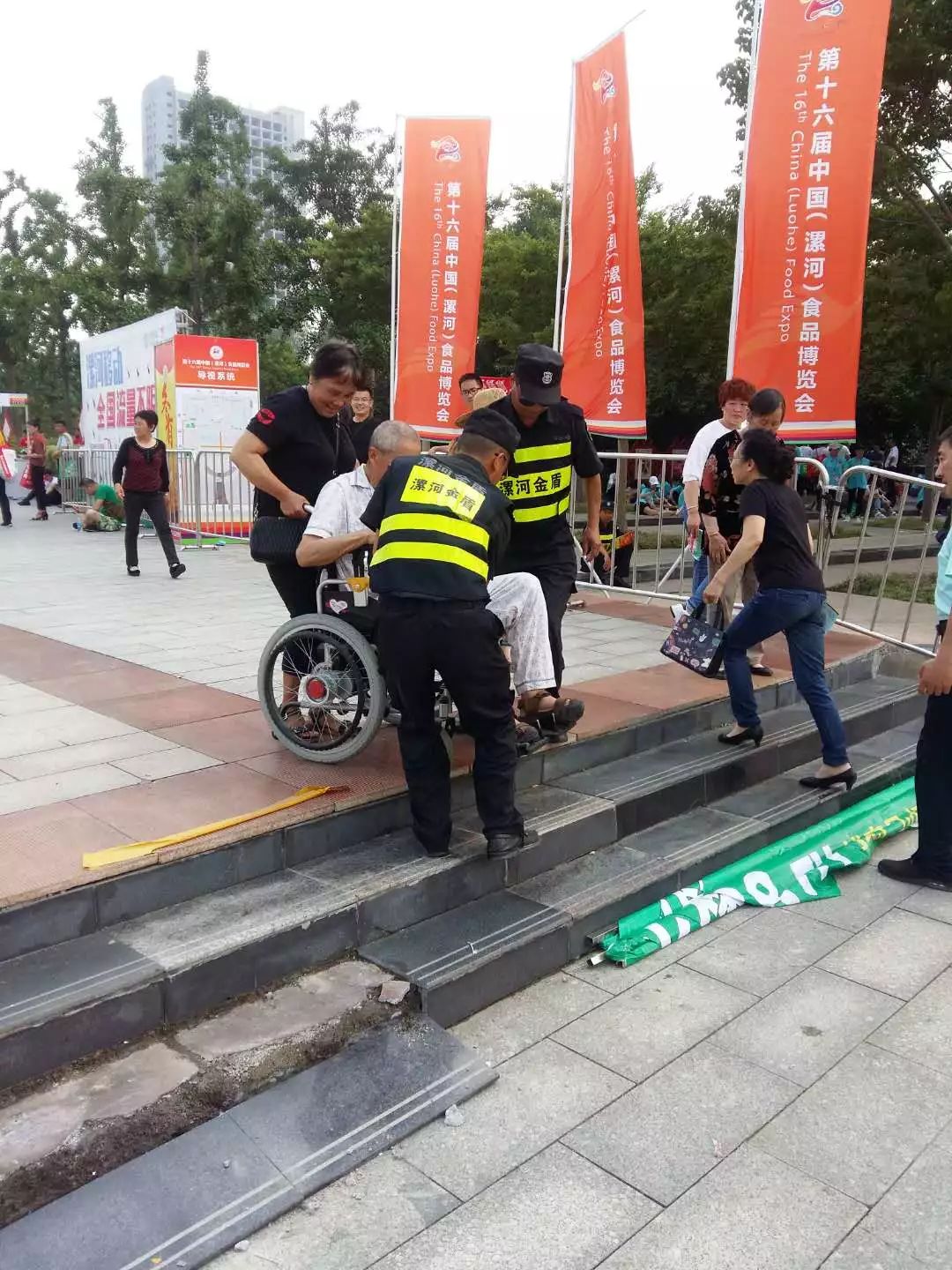 食博會(huì )期間,幫助多名行走不便老人上下臺階,多次得到市民的贊賞和肯定