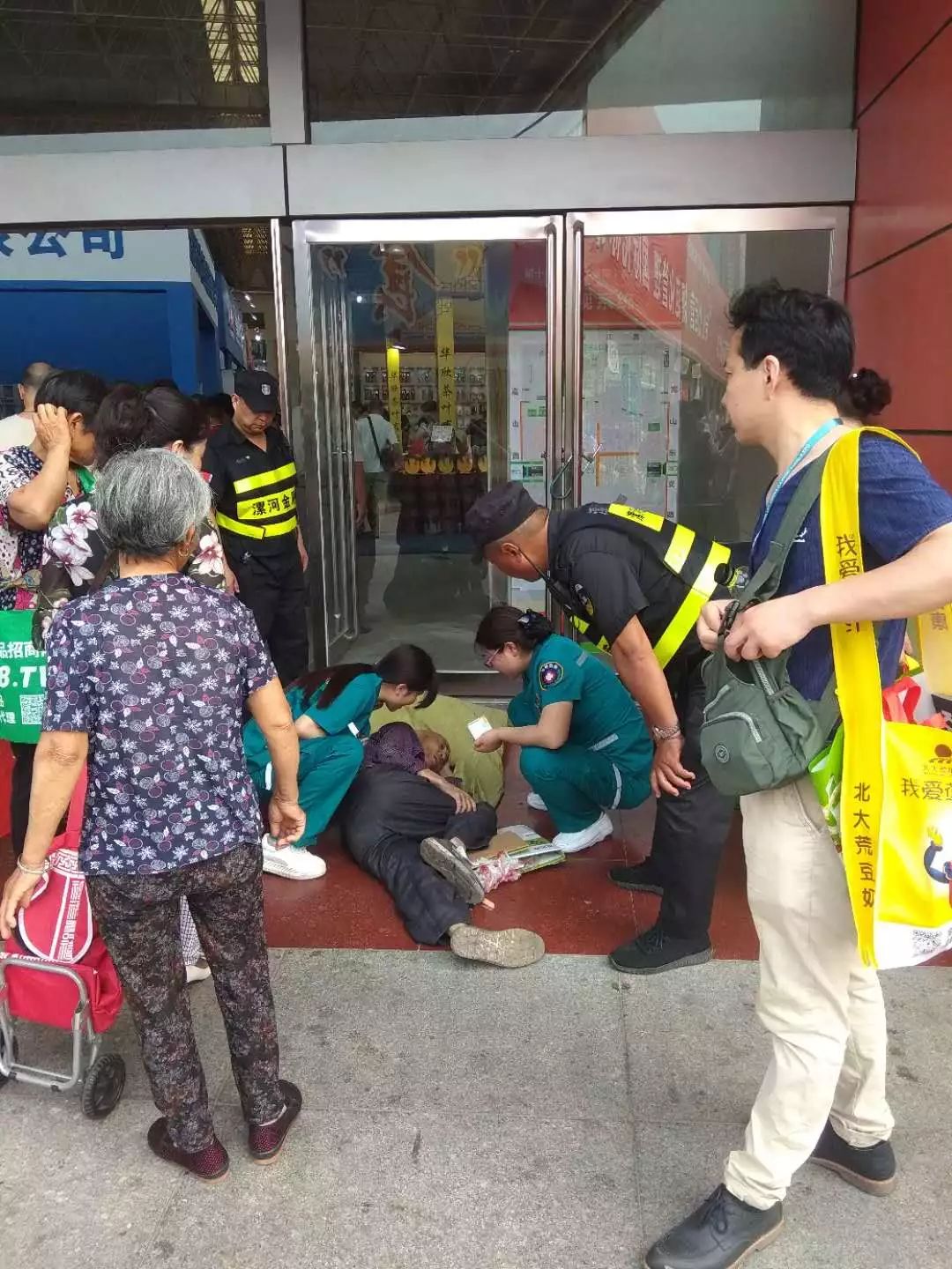 ? ? ? 5月17日上午10:00左右,由于天氣炎熱,一名70歲左右老人暈倒在展館門(mén)口,執勤保安及時(shí)發(fā)現立馬撥打急救電話(huà),并細心找來(lái)紙箱子為老人墊在身下,直到急救醫生將老人拉回醫院救治,才放心繼續工作!